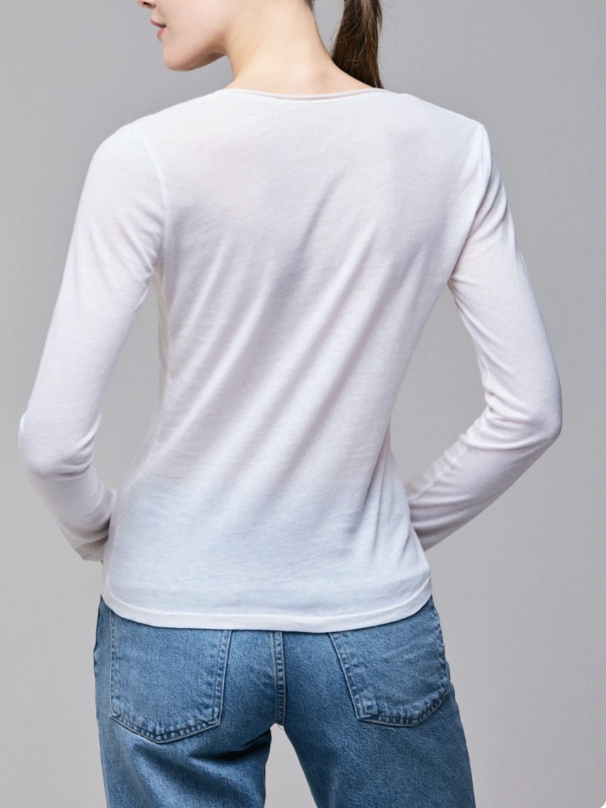 החולצה בהרכב בד של: 67% ויסקוזה . 33% כותנה אורגנית. בצבע לבן