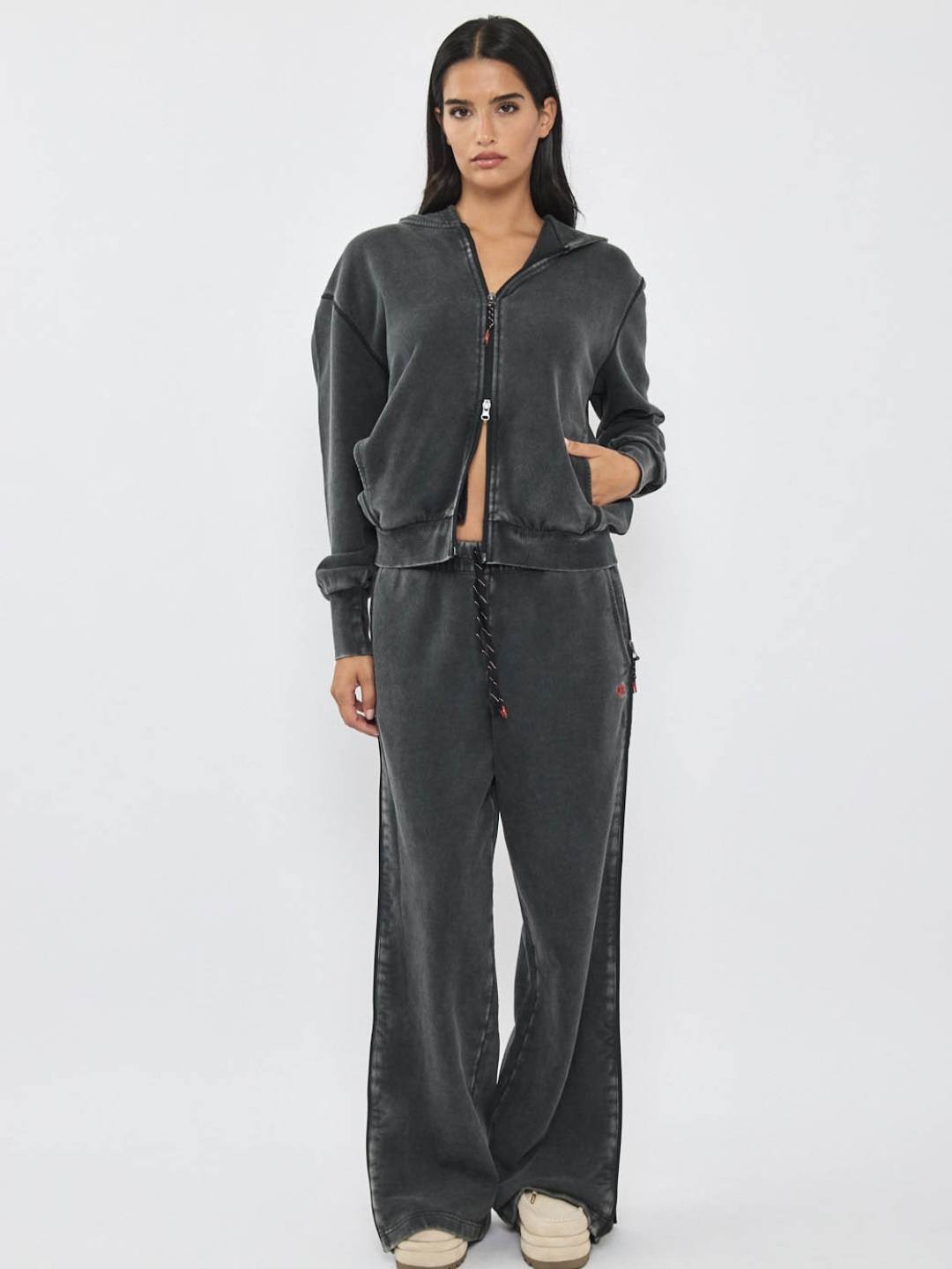 צידי המכנס מסתיימים ברוכסן לאורך כל הרגל שנפתח  לעוד רוחב.