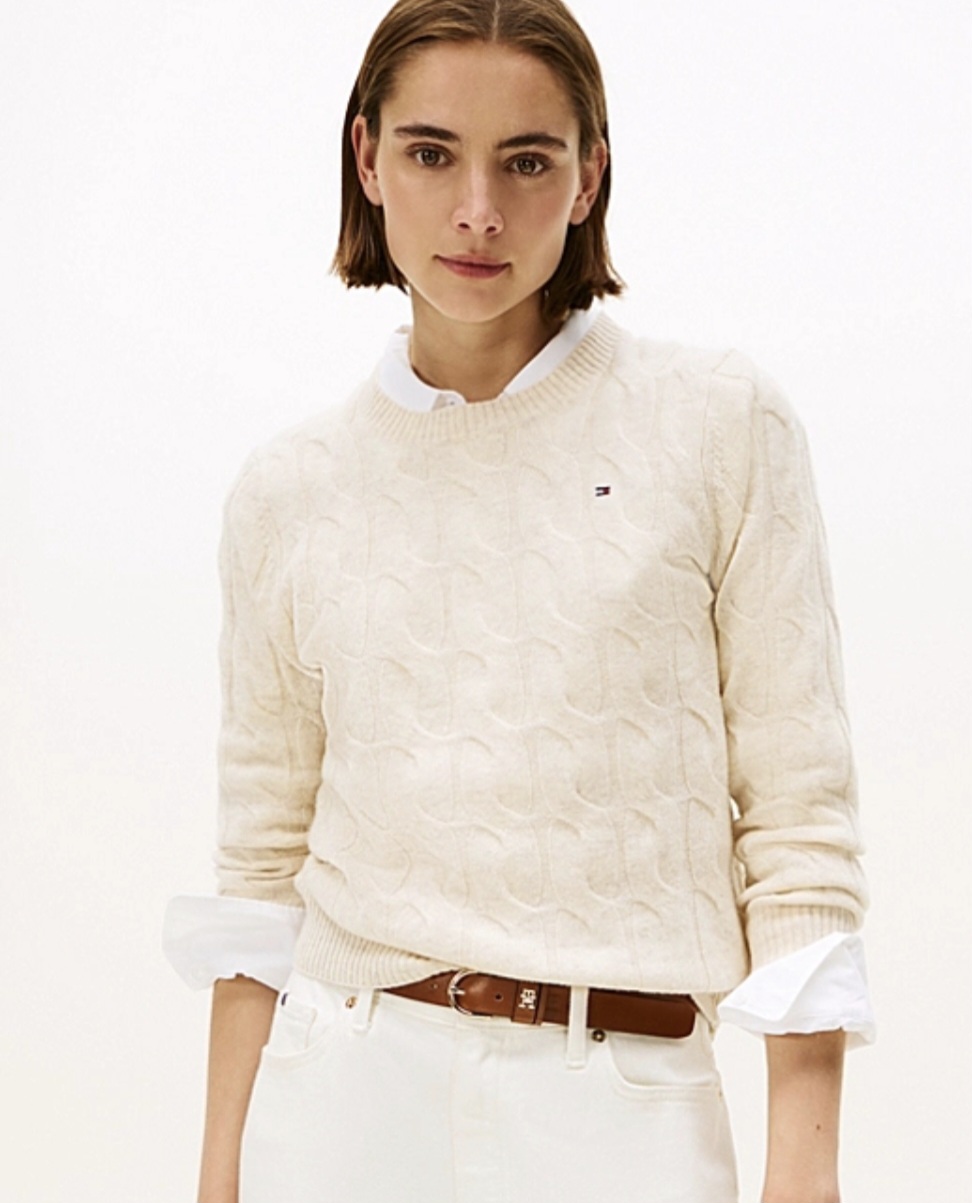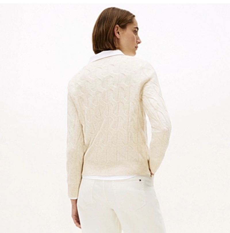 סריג בגזרה ישרה  משוחררת מעט מהגוף . צווארון ניקי של המותג  TOMMY HILFIGER