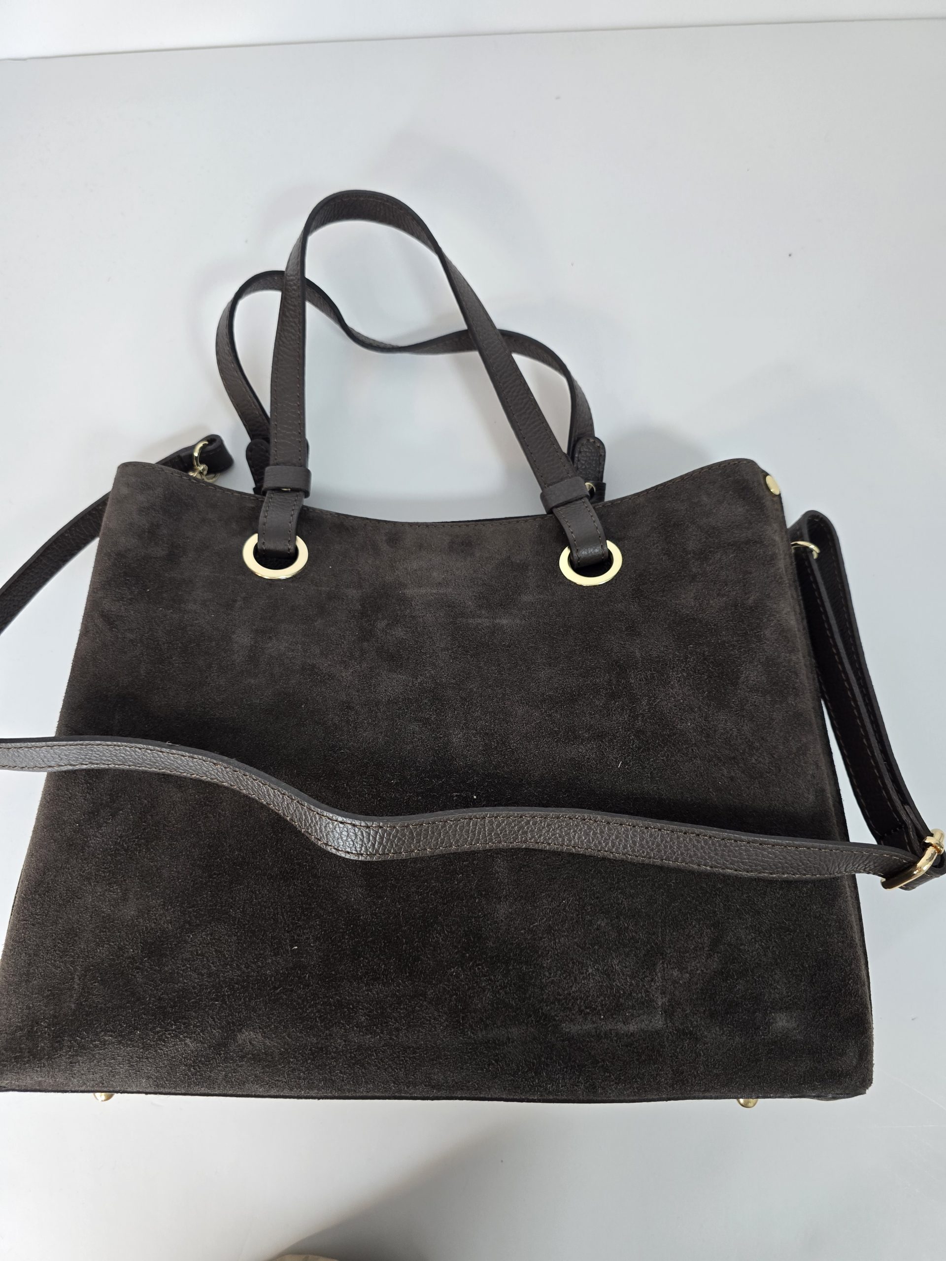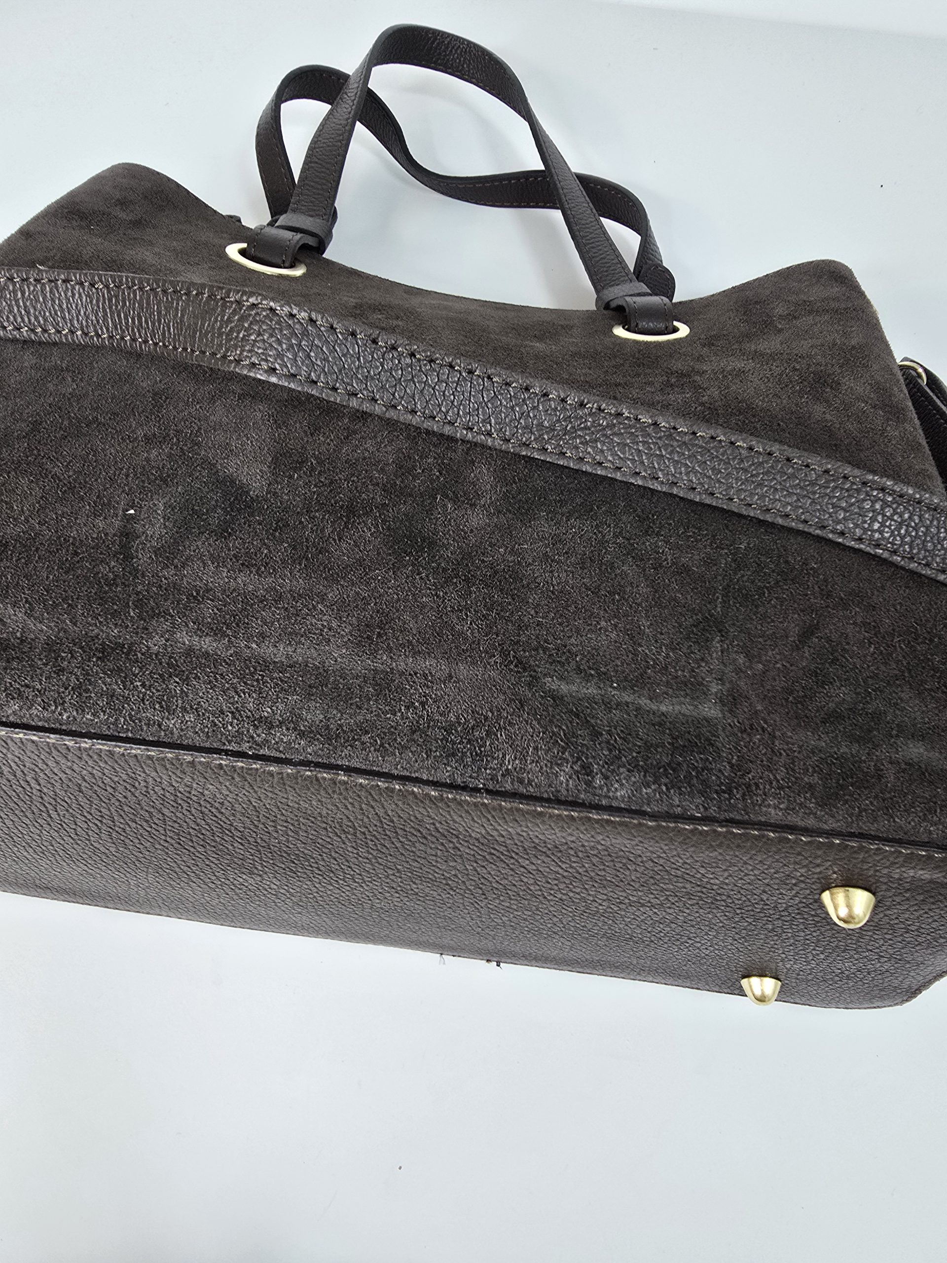 לתיק שני רוצעות עור מחוספס .ורצועה ארוכה לנשיאה לכתף. מתאים ליום יום ולמשרד.
