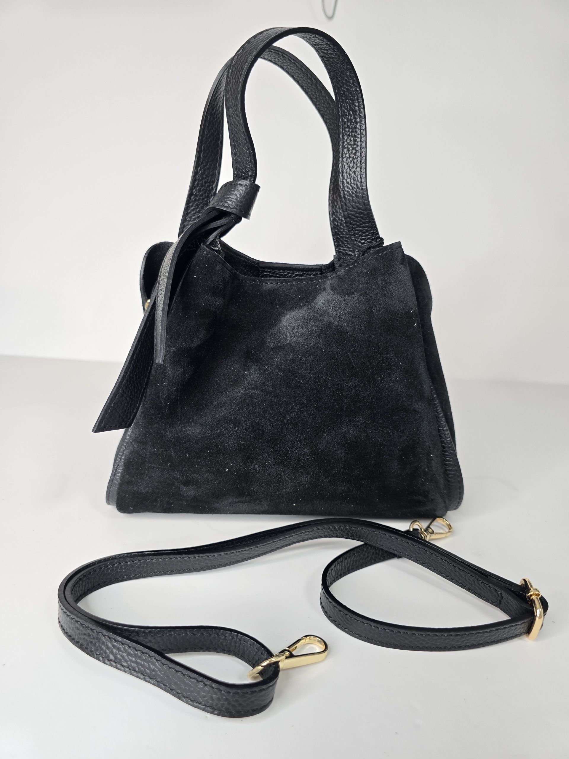 תיק עור זמש( עור הפוך) בדוגמת שק טרפז