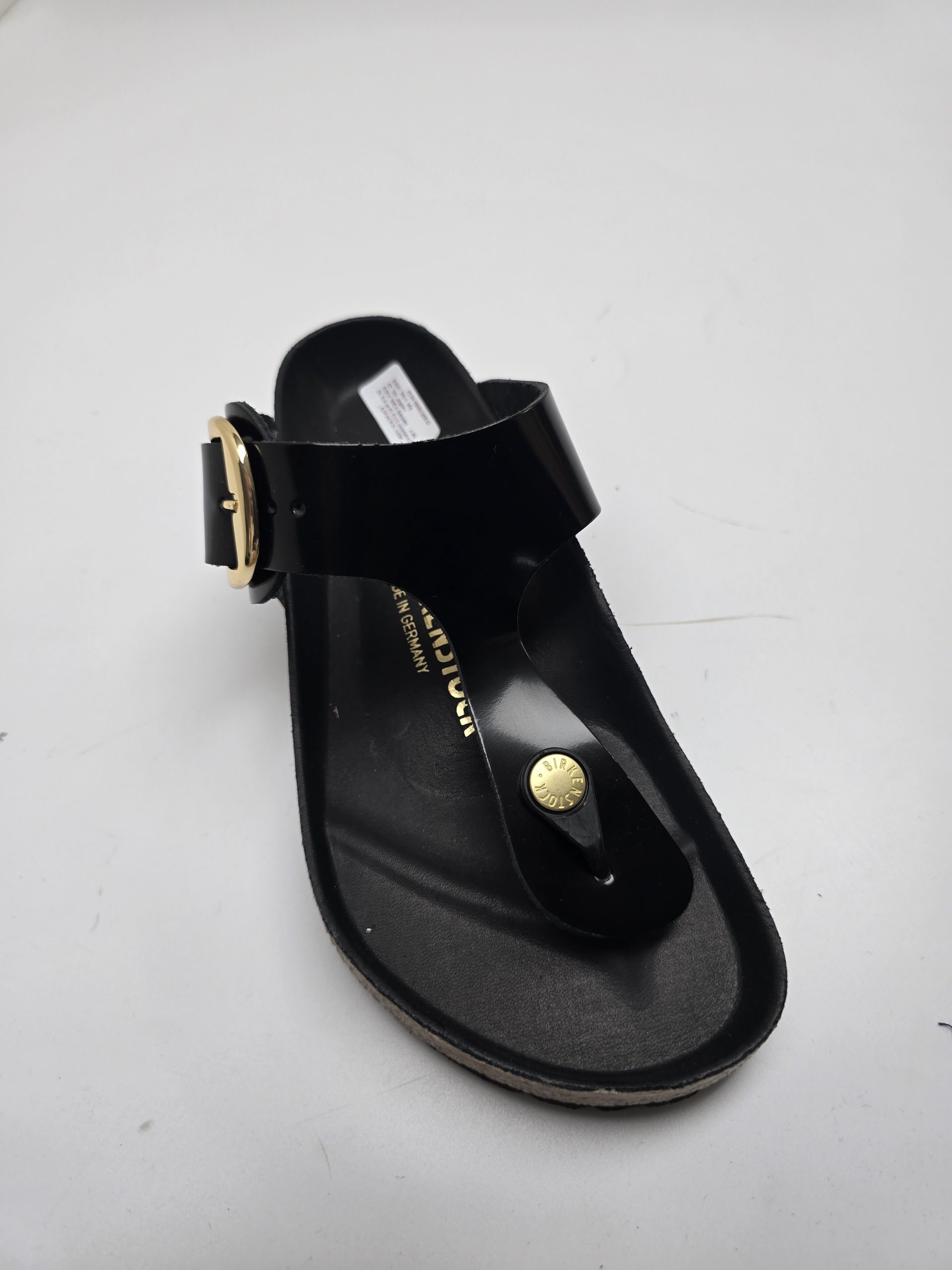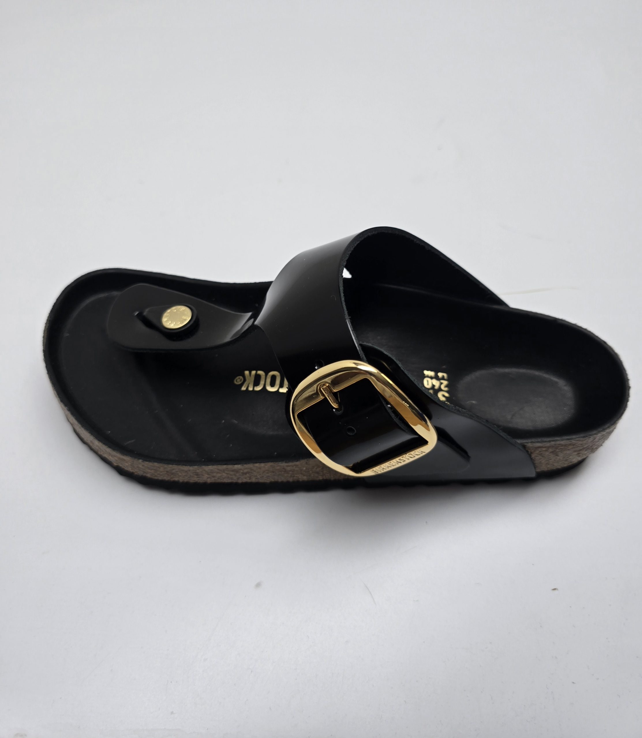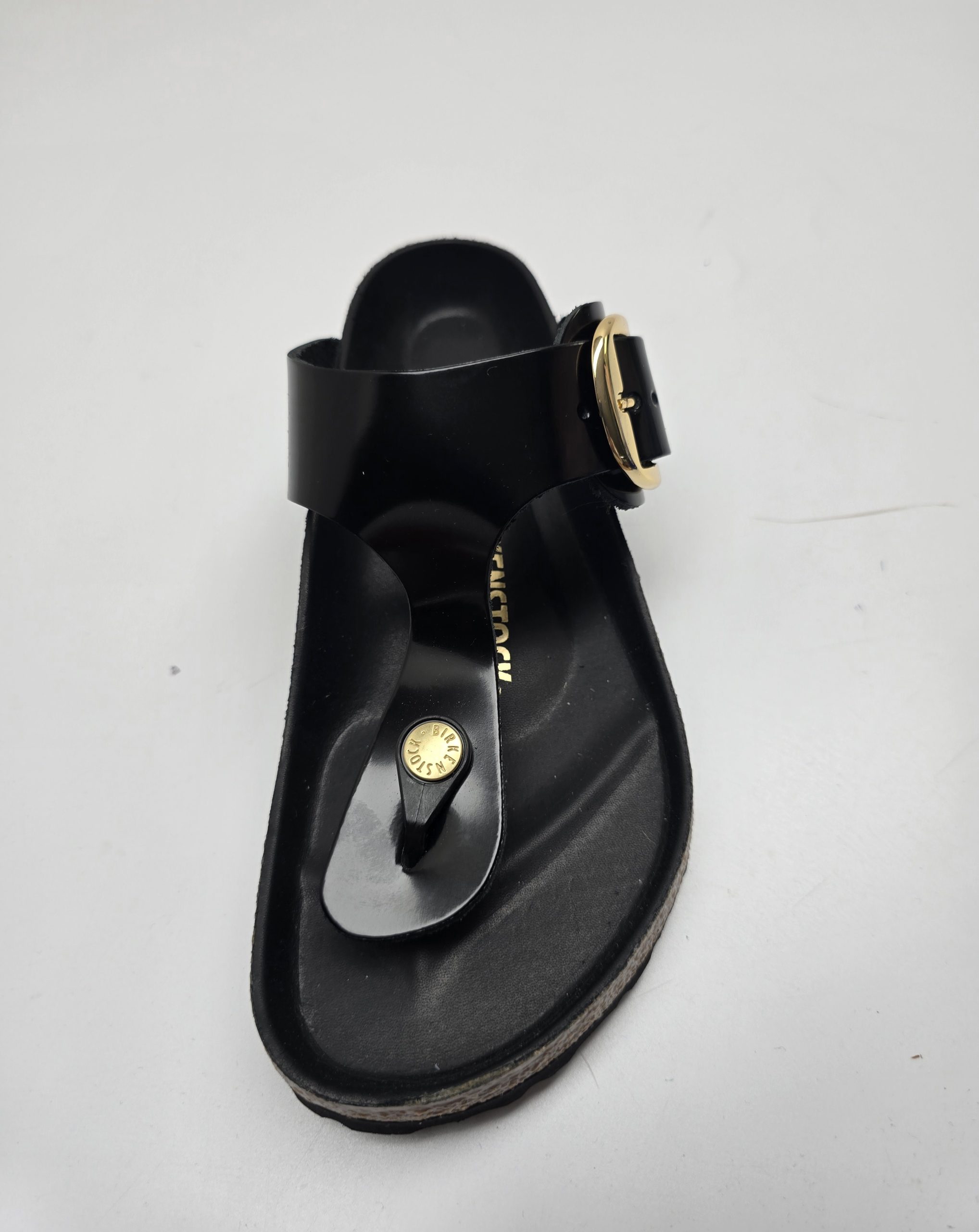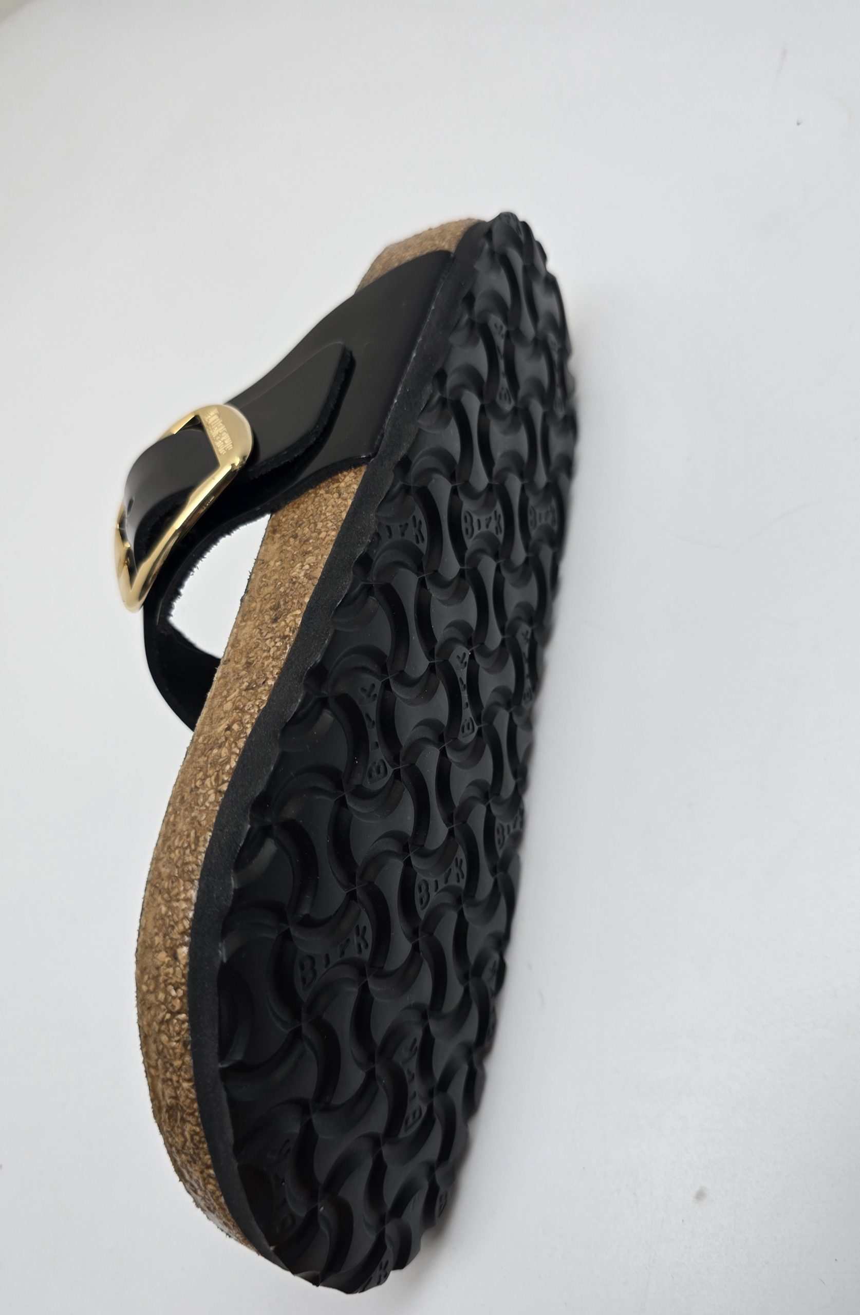 הדגם האייקוני בצע שחור לק בדגם אצבע בשילוב אבזם . עשוי עור .