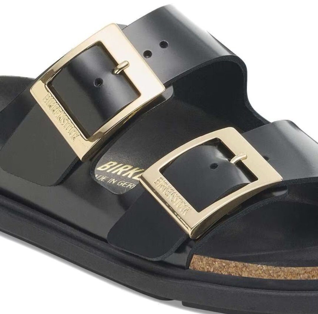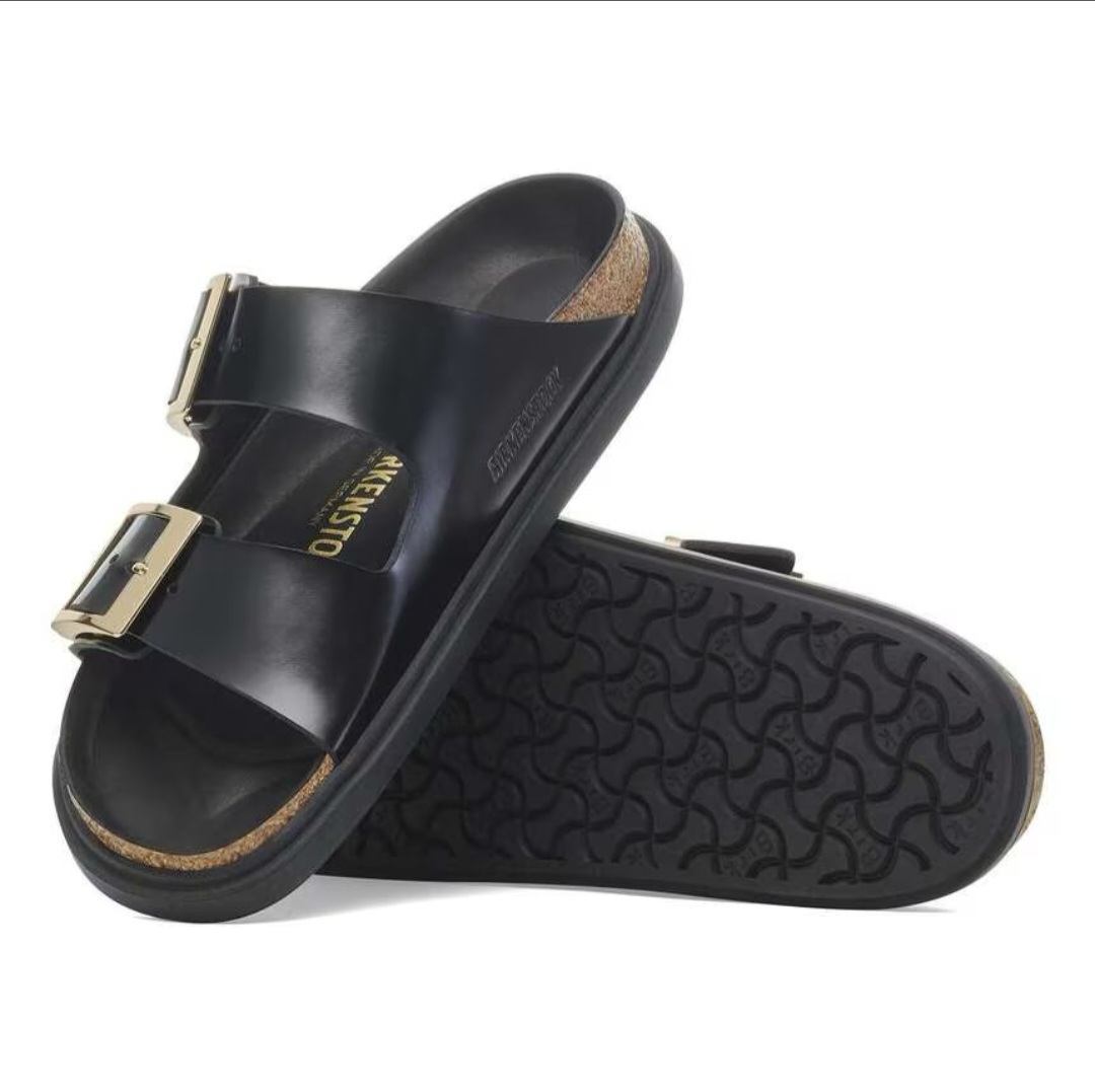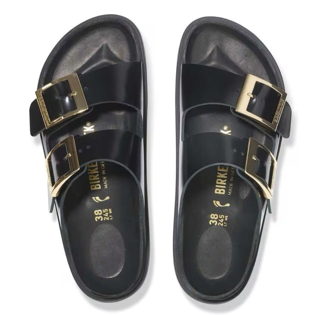 כפכף BIRKENSTOCK שחור עם אבזמים גדולים- נוחות יוקרתית ליום יום.