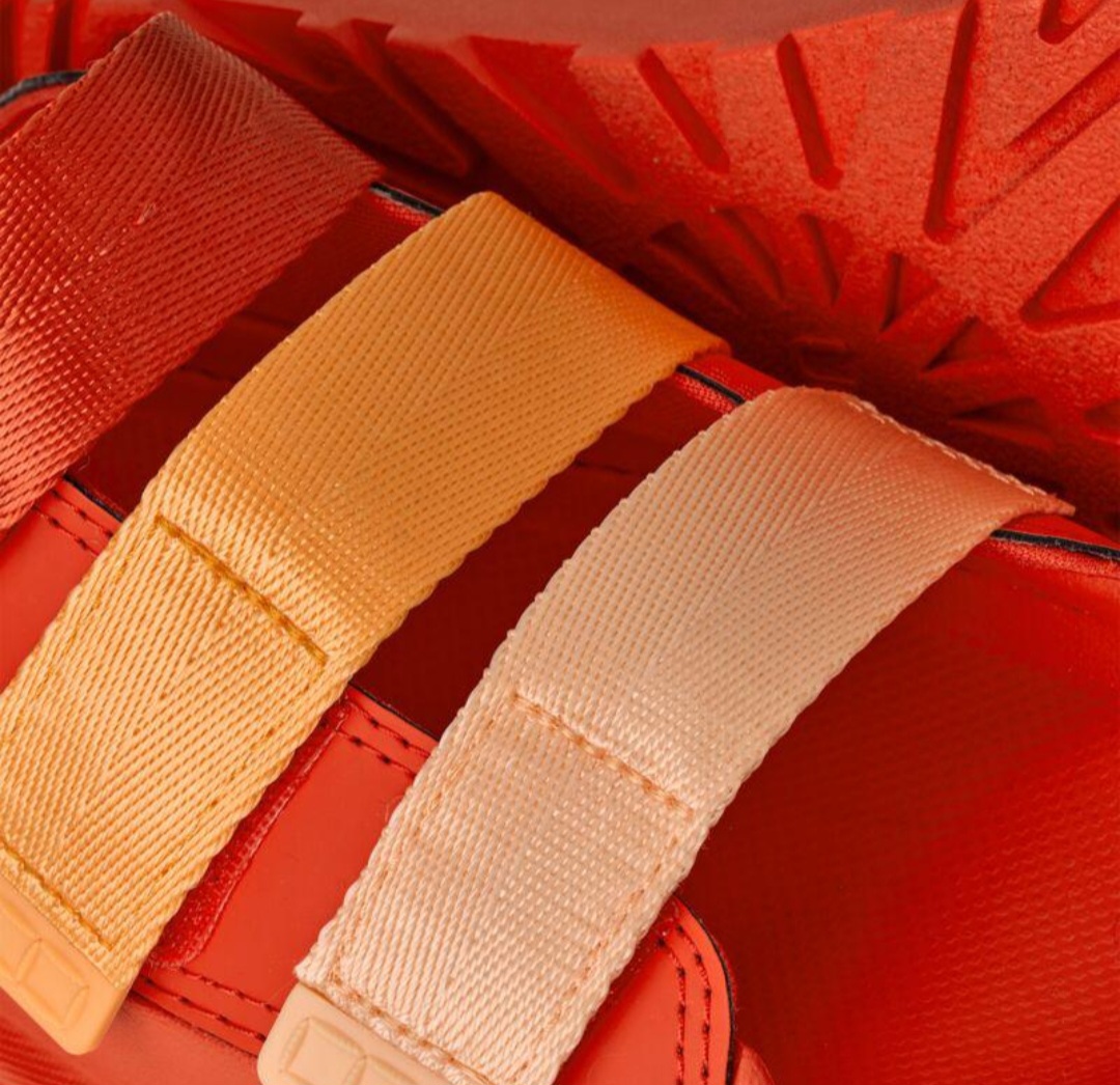 עיצוב בולט בצבע אדום עם רצועות בגווני כתום שנותן וייב ספורטיבי – אופנתי שלא מתעלמים ממנו